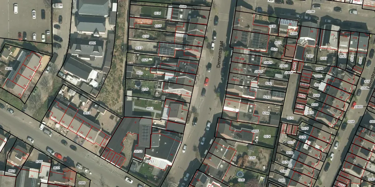 Het perceel waarop Demertstraat 28 staat heeft een oppervlakte van 340 m². Dit is een groot perceel. De perceeloppervlakte wordt geregistreerd door het Kadaster. Gedetailleerde informatie over de maten van dit perceel kunt u vinden in het rapport Kadastrale kaart met maatvoering van Demertstraat 28.