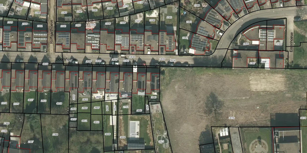 Het perceel waarop Doomhoeve 37 staat heeft een oppervlakte van 187 m². Dit is een middelgroot perceel. De perceeloppervlakte wordt geregistreerd door het Kadaster. Gedetailleerde informatie over de maten van dit perceel kunt u vinden in het rapport Kadastrale kaart met maatvoering van Doomhoeve 37.