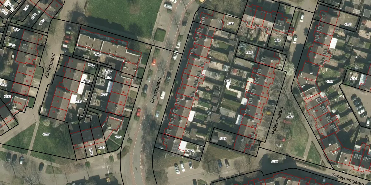 Het perceel waarop Drenckgaard 65 staat heeft een oppervlakte van 3370 m². Dit is een zeer groot perceel. De perceeloppervlakte wordt geregistreerd door het Kadaster. Gedetailleerde informatie over de maten van dit perceel kunt u vinden in het rapport Kadastrale kaart met maatvoering van Drenckgaard 65.