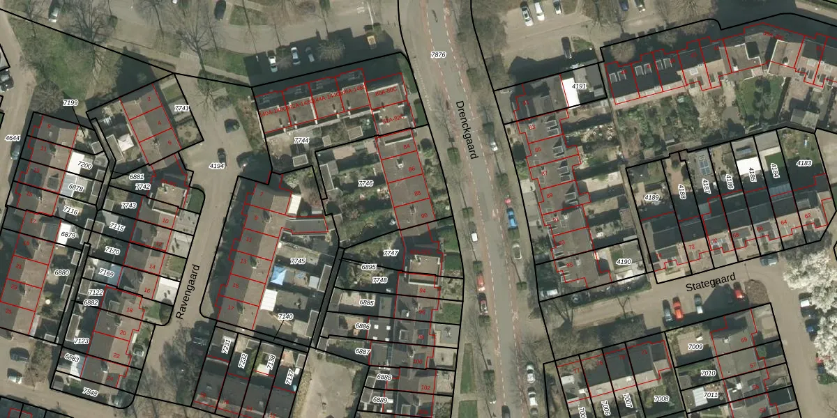 Het perceel waarop Drenckgaard 90 staat heeft een oppervlakte van 660 m². Dit is een groot perceel. De perceeloppervlakte wordt geregistreerd door het Kadaster. Gedetailleerde informatie over de maten van dit perceel kunt u vinden in het rapport Kadastrale kaart met maatvoering van Drenckgaard 90.