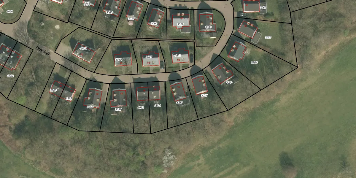 Het perceel waarop Dukdalf 50 staat heeft een oppervlakte van 372 m². Dit is een groot perceel. De perceeloppervlakte wordt geregistreerd door het Kadaster. Gedetailleerde informatie over de maten van dit perceel kunt u vinden in het rapport Kadastrale kaart met maatvoering van Dukdalf 50.