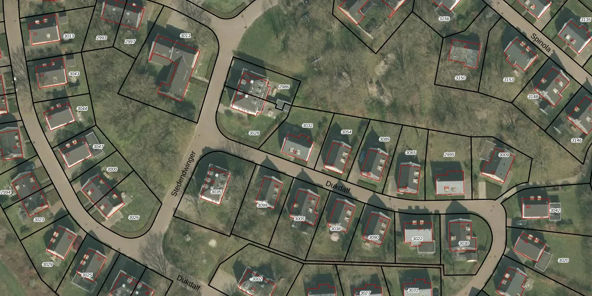 Het perceel waarop Dukdalf 72 staat heeft een oppervlakte van 315 m². Dit is een groot perceel. De perceeloppervlakte wordt geregistreerd door het Kadaster. Gedetailleerde informatie over de maten van dit perceel kunt u vinden in het rapport Kadastrale kaart met maatvoering van Dukdalf 72.