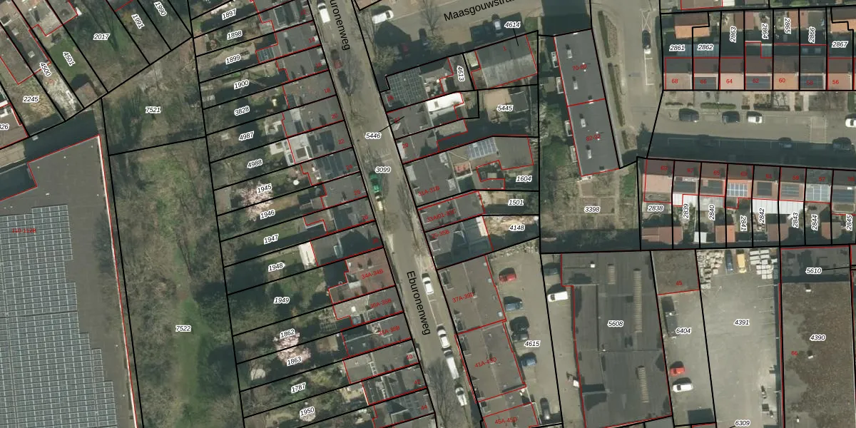 Eburonenweg 33-B-01 is gelegen op kadastraal perceel MTT00G1501. Deze kadastrale aanduiding is uniek en wordt gebruikt door het Kadaster om eigendomsrechten en andere zakelijke rechten vast te leggen. Het perceel maakt onderdeel uit van de kadastrale gemeente Maastricht.