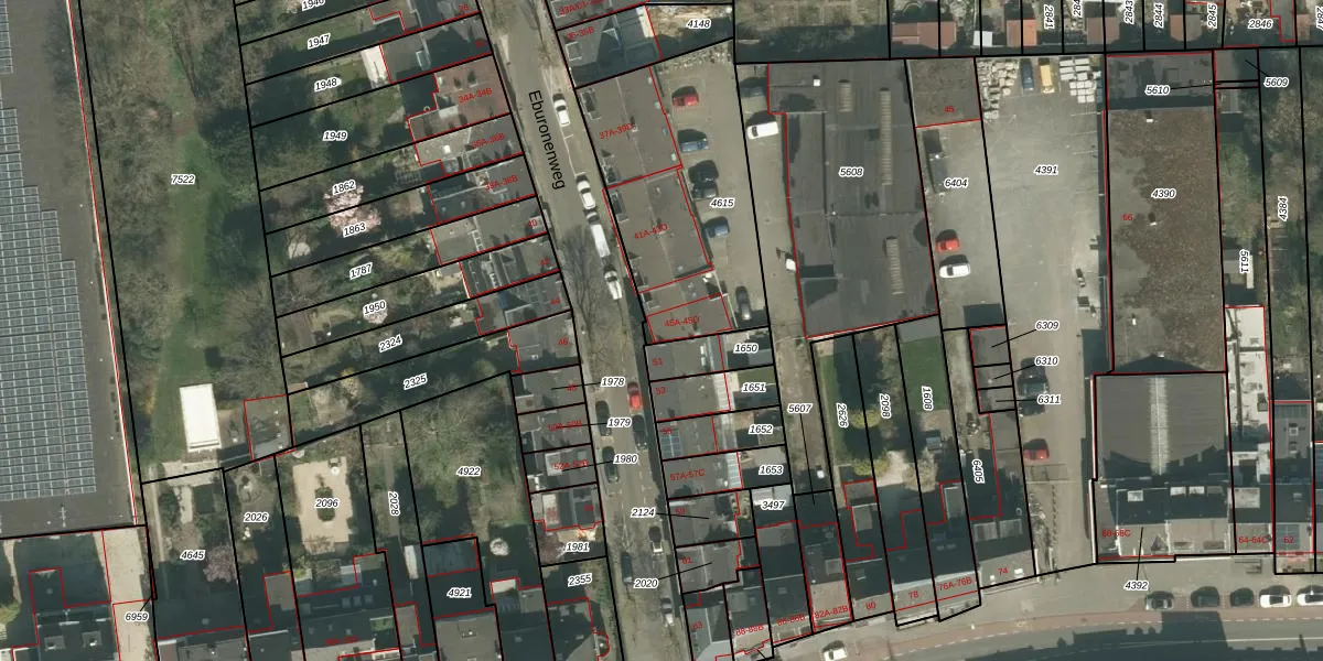 Eburonenweg 45-B is gelegen op kadastraal perceel MTT00G4615. Deze kadastrale aanduiding is uniek en wordt gebruikt door het Kadaster om eigendomsrechten en andere zakelijke rechten vast te leggen. Het perceel maakt onderdeel uit van de kadastrale gemeente Maastricht.