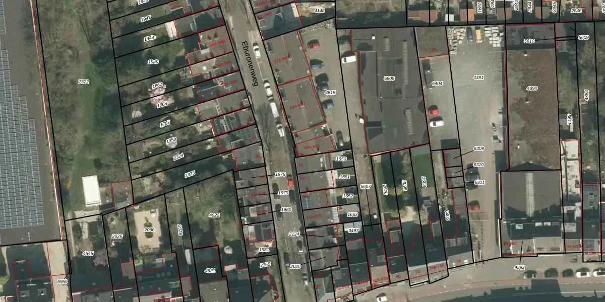 Eburonenweg 45-D is gelegen op kadastraal perceel MTT00G4615. Deze kadastrale aanduiding is uniek en wordt gebruikt door het Kadaster om eigendomsrechten en andere zakelijke rechten vast te leggen. Het perceel maakt onderdeel uit van de kadastrale gemeente Maastricht.