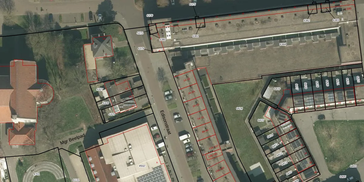 Edisonstraat 3-A is gelegen op kadastraal perceel MTT00G6384. Deze kadastrale aanduiding is uniek en wordt gebruikt door het Kadaster om eigendomsrechten en andere zakelijke rechten vast te leggen. Het perceel maakt onderdeel uit van de kadastrale gemeente Maastricht.