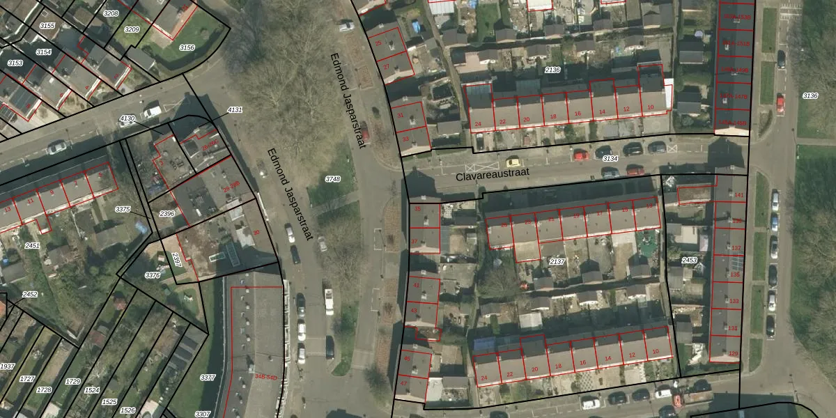 Het perceel waarop Edmond Jasparstraat 35 staat heeft een oppervlakte van 3200 m². Dit is een zeer groot perceel. De perceeloppervlakte wordt geregistreerd door het Kadaster. Gedetailleerde informatie over de maten van dit perceel kunt u vinden in het rapport Kadastrale kaart met maatvoering van Edmond Jasparstraat 35.
