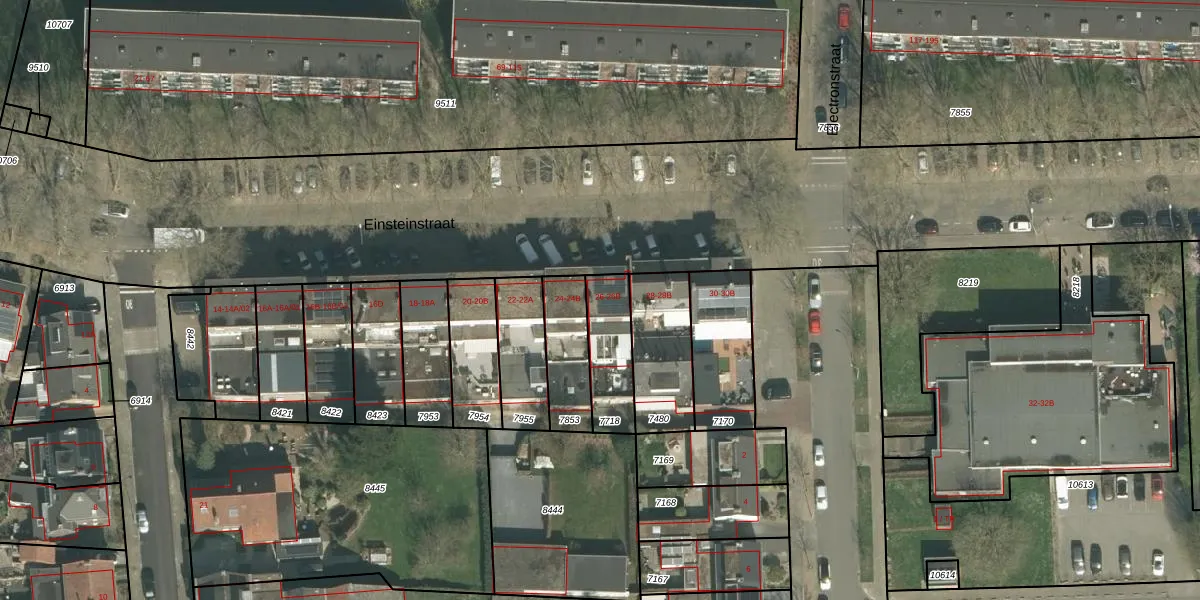 Het perceel waarop Einsteinstraat 26-B staat heeft een oppervlakte van 188 m². Dit is een middelgroot perceel. De perceeloppervlakte wordt geregistreerd door het Kadaster. Gedetailleerde informatie over de maten van dit perceel kunt u vinden in het rapport Kadastrale kaart met maatvoering van Einsteinstraat 26-B.
