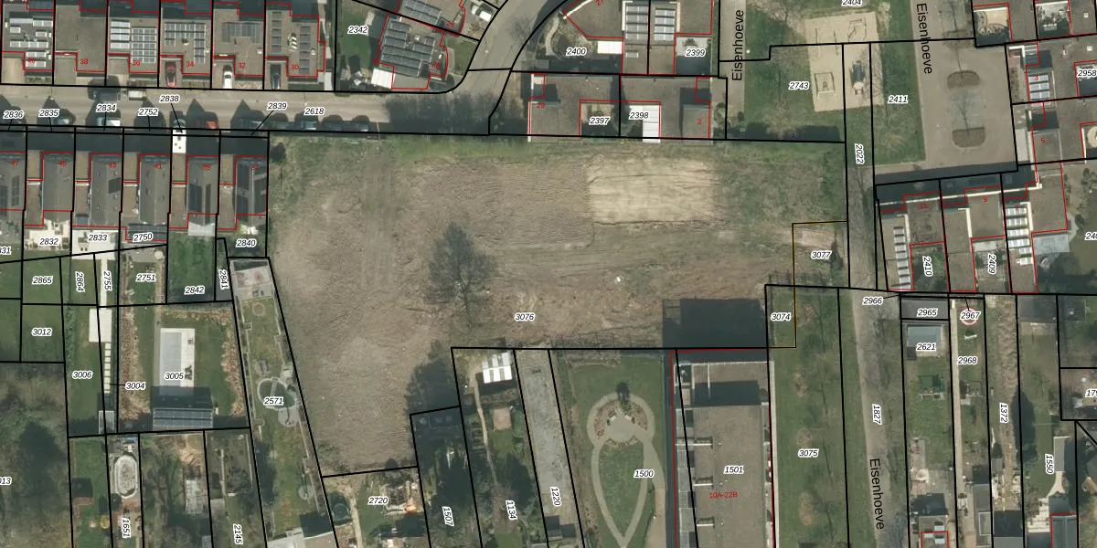 Eisenhoeve 34-B is gelegen op kadastraal perceel ABY00C3076. Deze kadastrale aanduiding is uniek en wordt gebruikt door het Kadaster om eigendomsrechten en andere zakelijke rechten vast te leggen. Het perceel maakt onderdeel uit van de kadastrale gemeente Amby.