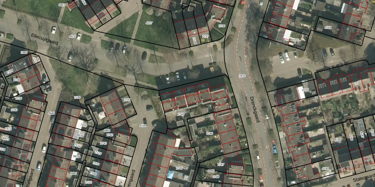 Het perceel waarop Ellecuylgaard 144-B staat heeft een oppervlakte van 745 m². Dit is een groot perceel. De perceeloppervlakte wordt geregistreerd door het Kadaster. Gedetailleerde informatie over de maten van dit perceel kunt u vinden in het rapport Kadastrale kaart met maatvoering van Ellecuylgaard 144-B.