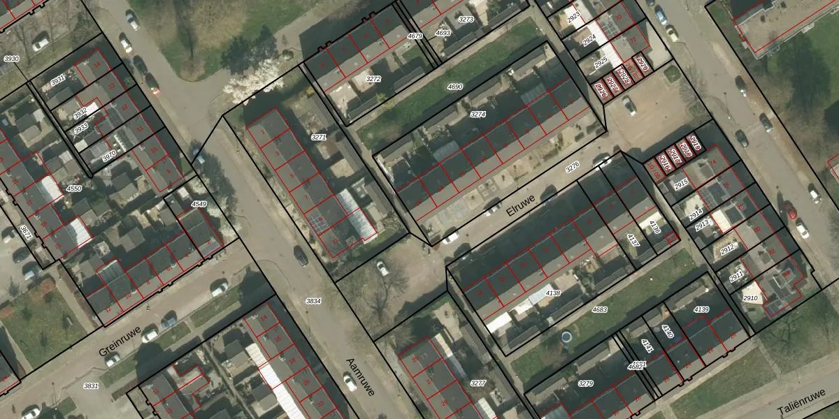 Het perceel waarop Elruwe 16 staat heeft een oppervlakte van 1295 m². Dit is een zeer groot perceel. De perceeloppervlakte wordt geregistreerd door het Kadaster. Gedetailleerde informatie over de maten van dit perceel kunt u vinden in het rapport Kadastrale kaart met maatvoering van Elruwe 16.