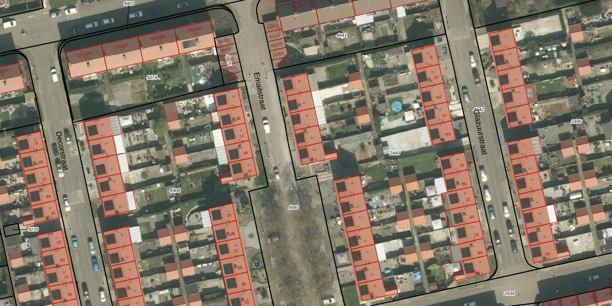 Het perceel waarop Emailstraat 15 staat heeft een oppervlakte van 4450 m². Dit is een zeer groot perceel. De perceeloppervlakte wordt geregistreerd door het Kadaster. Gedetailleerde informatie over de maten van dit perceel kunt u vinden in het rapport Kadastrale kaart met maatvoering van Emailstraat 15.