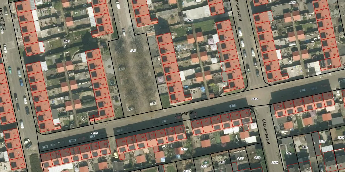 Het perceel waarop Emailstraat 27 staat heeft een oppervlakte van 4450 m². Dit is een zeer groot perceel. De perceeloppervlakte wordt geregistreerd door het Kadaster. Gedetailleerde informatie over de maten van dit perceel kunt u vinden in het rapport Kadastrale kaart met maatvoering van Emailstraat 27.
