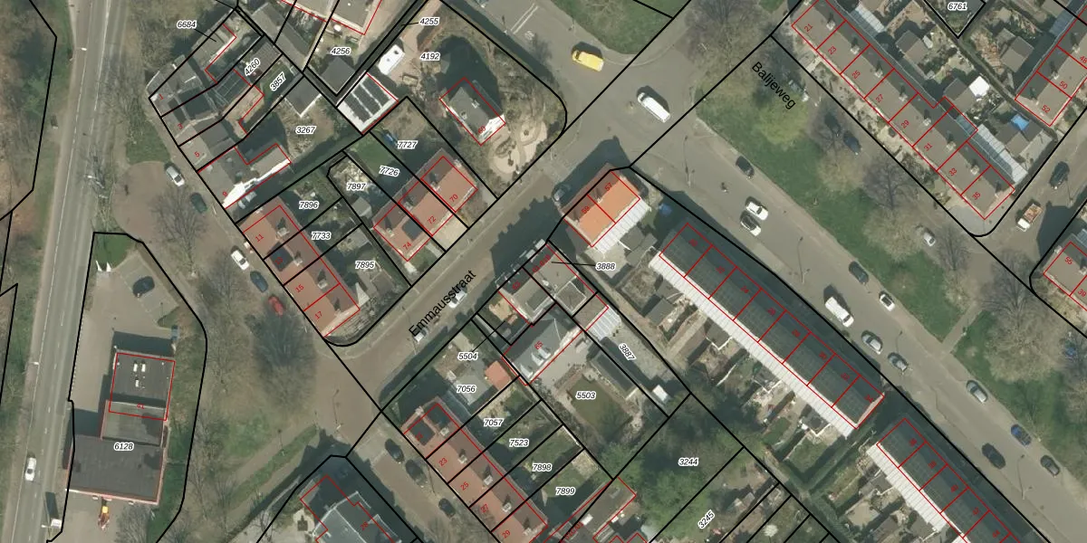 Het perceel waarop Emmausstraat 61 staat heeft een oppervlakte van 93 m². Dit is een klein perceel. De perceeloppervlakte wordt geregistreerd door het Kadaster. Gedetailleerde informatie over de maten van dit perceel kunt u vinden in het rapport Kadastrale kaart met maatvoering van Emmausstraat 61.