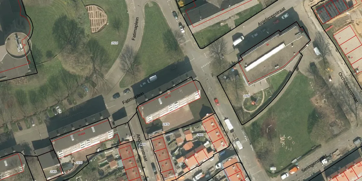 Het perceel waarop Fatimaplein 64 staat heeft een oppervlakte van 861 m². Dit is een groot perceel. De perceeloppervlakte wordt geregistreerd door het Kadaster. Gedetailleerde informatie over de maten van dit perceel kunt u vinden in het rapport Kadastrale kaart met maatvoering van Fatimaplein 64.