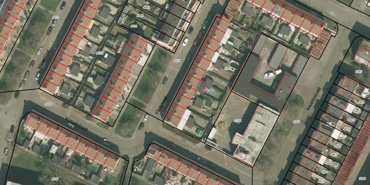 Het perceel waarop Flintstraat 21 staat heeft een oppervlakte van 3070 m². Dit is een zeer groot perceel. De perceeloppervlakte wordt geregistreerd door het Kadaster. Gedetailleerde informatie over de maten van dit perceel kunt u vinden in het rapport Kadastrale kaart met maatvoering van Flintstraat 21.