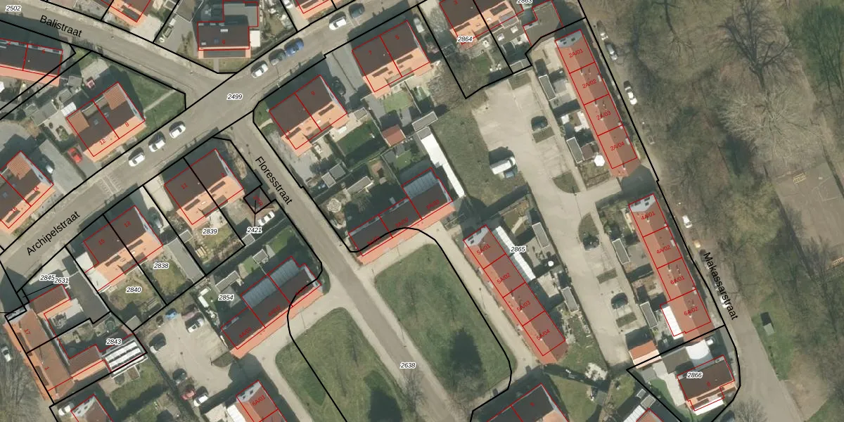 Het perceel waarop Floresstraat 3-A-03 staat heeft een oppervlakte van 6935 m². Dit is een zeer groot perceel. De perceeloppervlakte wordt geregistreerd door het Kadaster. Gedetailleerde informatie over de maten van dit perceel kunt u vinden in het rapport Kadastrale kaart met maatvoering van Floresstraat 3-A-03.
