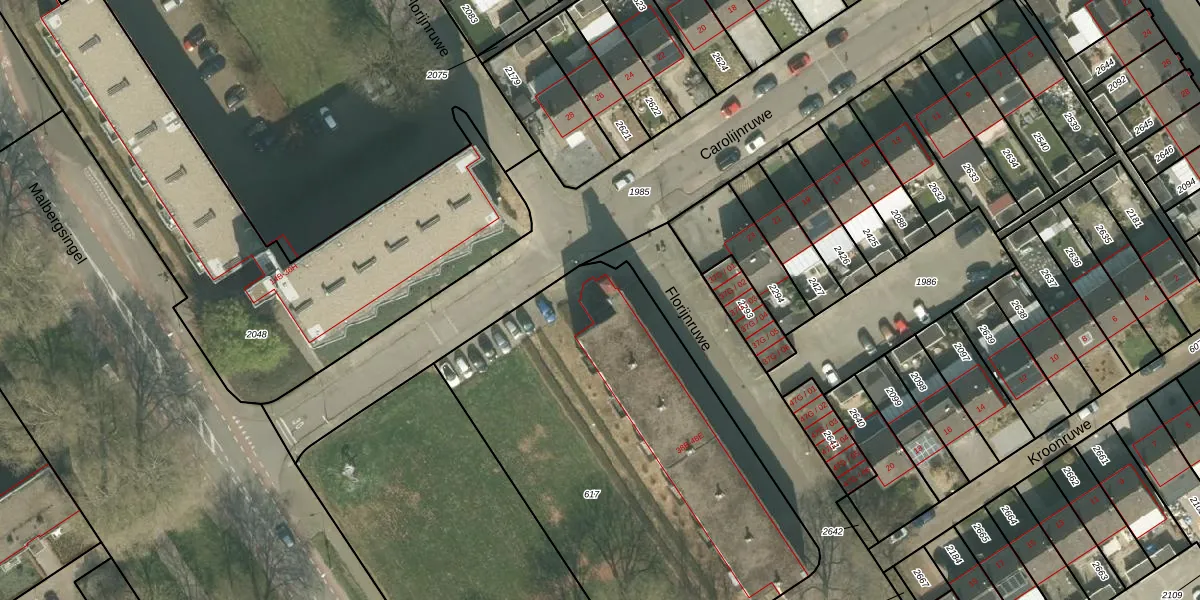 Het perceel waarop Florijnruwe 44-B staat heeft een oppervlakte van 2315 m². Dit is een zeer groot perceel. De perceeloppervlakte wordt geregistreerd door het Kadaster. Gedetailleerde informatie over de maten van dit perceel kunt u vinden in het rapport Kadastrale kaart met maatvoering van Florijnruwe 44-B.