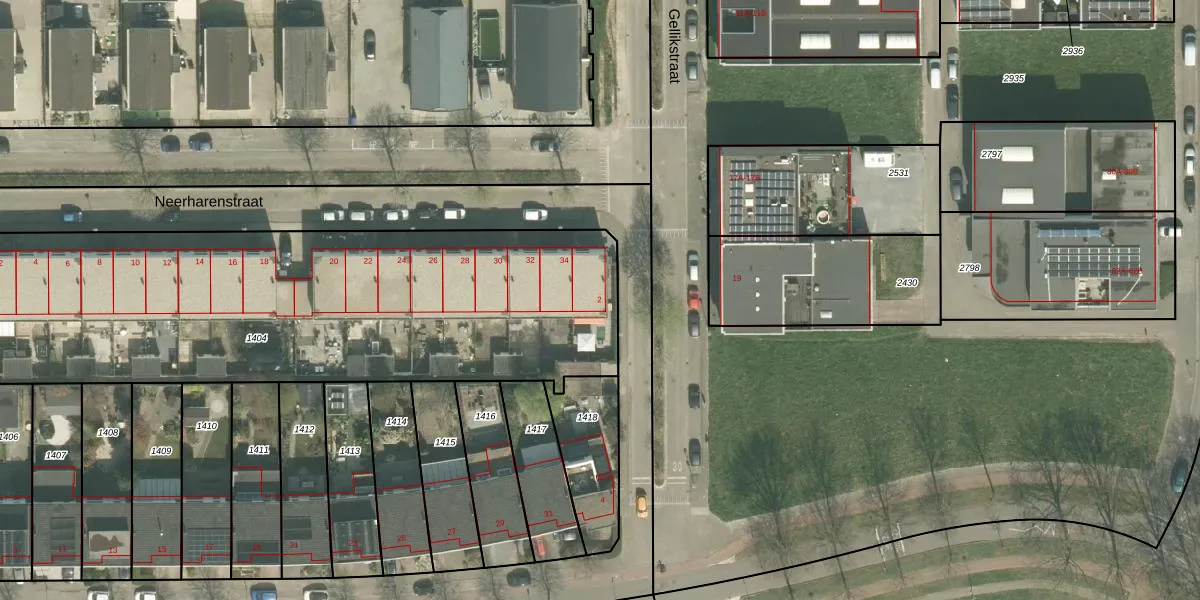 Het perceel waarop Gellikstraat 2 staat heeft een oppervlakte van 2850 m². Dit is een zeer groot perceel. De perceeloppervlakte wordt geregistreerd door het Kadaster. Gedetailleerde informatie over de maten van dit perceel kunt u vinden in het rapport Kadastrale kaart met maatvoering van Gellikstraat 2.