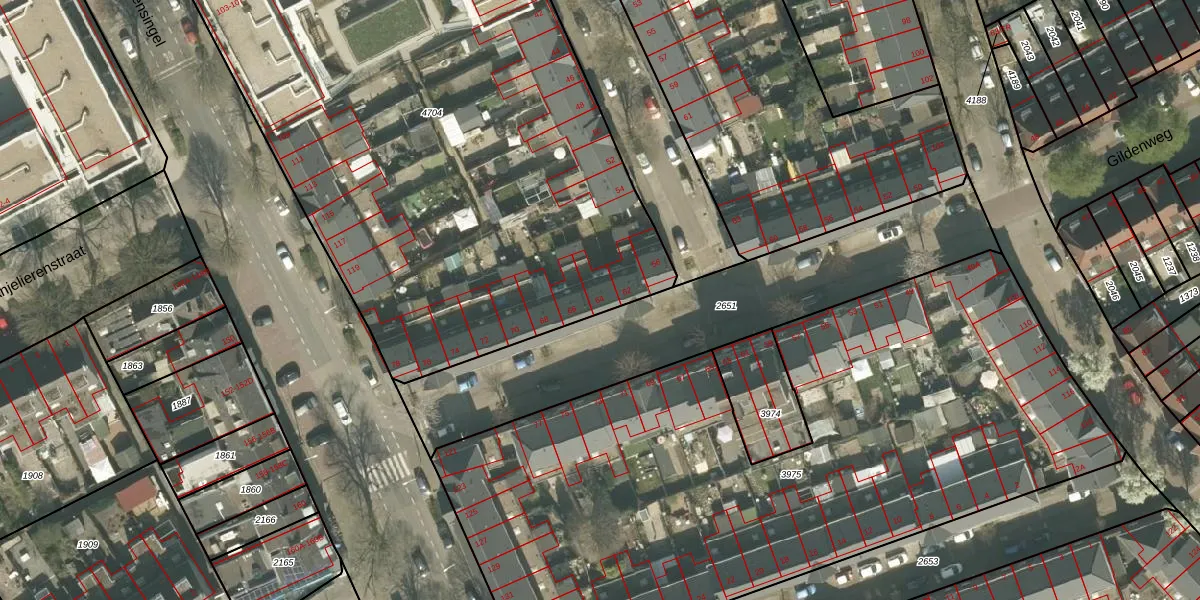 Het perceel waarop Gildenweg 64 staat heeft een oppervlakte van 4245 m². Dit is een zeer groot perceel. De perceeloppervlakte wordt geregistreerd door het Kadaster. Gedetailleerde informatie over de maten van dit perceel kunt u vinden in het rapport Kadastrale kaart met maatvoering van Gildenweg 64.
