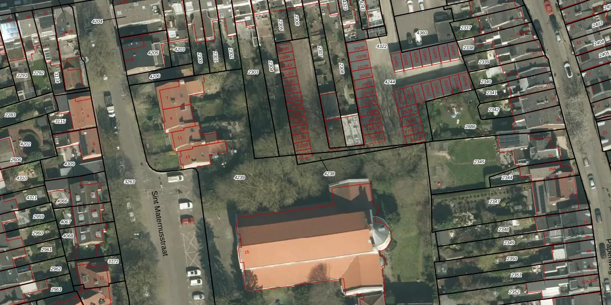 Glacisweg 1-G-32 is gelegen op kadastraal perceel PTR00B4244. Deze kadastrale aanduiding is uniek en wordt gebruikt door het Kadaster om eigendomsrechten en andere zakelijke rechten vast te leggen. Het perceel maakt onderdeel uit van de kadastrale gemeente Sint Pieter.