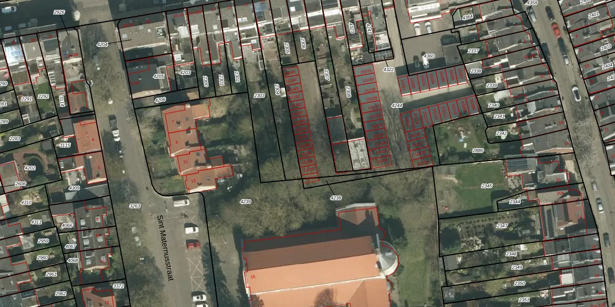 Het adres is gelegen op perceel 4244 in de sectie B en de kadastrale gemeente Sint Pieter. De kadastrale aanduiding is aldus PTR00-B-4244. Het perceel is kleiner dan gemiddeld in Sint Pieter. Het perceel is 1580 m² groot, terwijl het gemiddelde ligt op 2118,95 m². De grootste perceeloppervlakte in de kadastrale gemeente is 47,6 ha. De kleinste oppervlakte bedraagt 0 m². Op het perceel liggen in totaal 44 adressen. De huidige grenzen van het perceel zijn digitaal in de Basisregistratie Kadaster (BRK) geregistreerd op 07-11-2007.