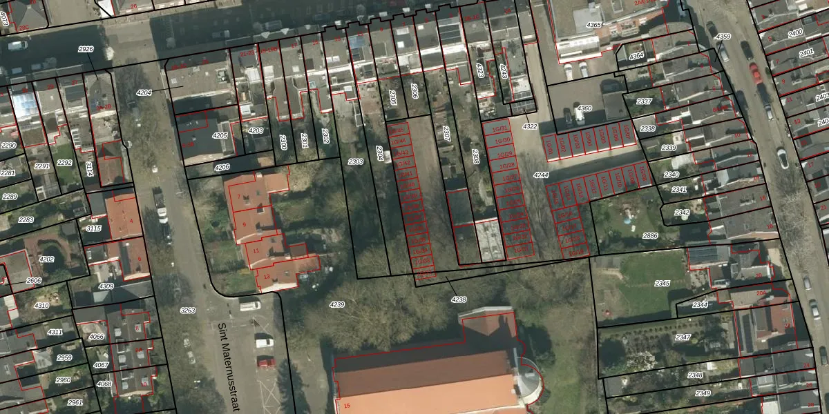Glacisweg 1-G-38 is gelegen op kadastraal perceel PTR00B4244. Deze kadastrale aanduiding is uniek en wordt gebruikt door het Kadaster om eigendomsrechten en andere zakelijke rechten vast te leggen. Het perceel maakt onderdeel uit van de kadastrale gemeente Sint Pieter.