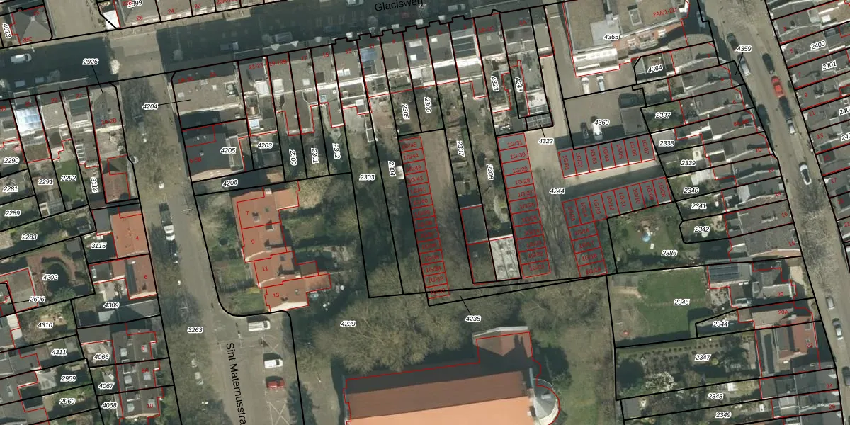 Glacisweg 1-G-39 is gelegen op kadastraal perceel PTR00B4244. Deze kadastrale aanduiding is uniek en wordt gebruikt door het Kadaster om eigendomsrechten en andere zakelijke rechten vast te leggen. Het perceel maakt onderdeel uit van de kadastrale gemeente Sint Pieter.