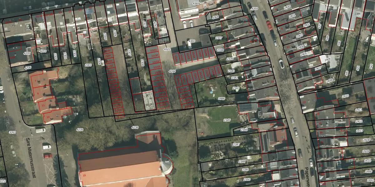 Glacisweg 1-G-17 is gelegen op kadastraal perceel PTR00B4244. Deze kadastrale aanduiding is uniek en wordt gebruikt door het Kadaster om eigendomsrechten en andere zakelijke rechten vast te leggen. Het perceel maakt onderdeel uit van de kadastrale gemeente Sint Pieter.