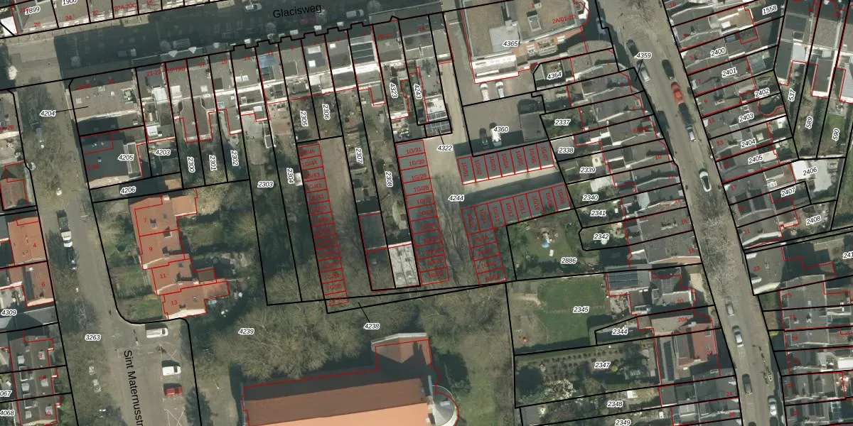 Glacisweg 1-G-26 is gelegen op kadastraal perceel PTR00B4244. Deze kadastrale aanduiding is uniek en wordt gebruikt door het Kadaster om eigendomsrechten en andere zakelijke rechten vast te leggen. Het perceel maakt onderdeel uit van de kadastrale gemeente Sint Pieter.