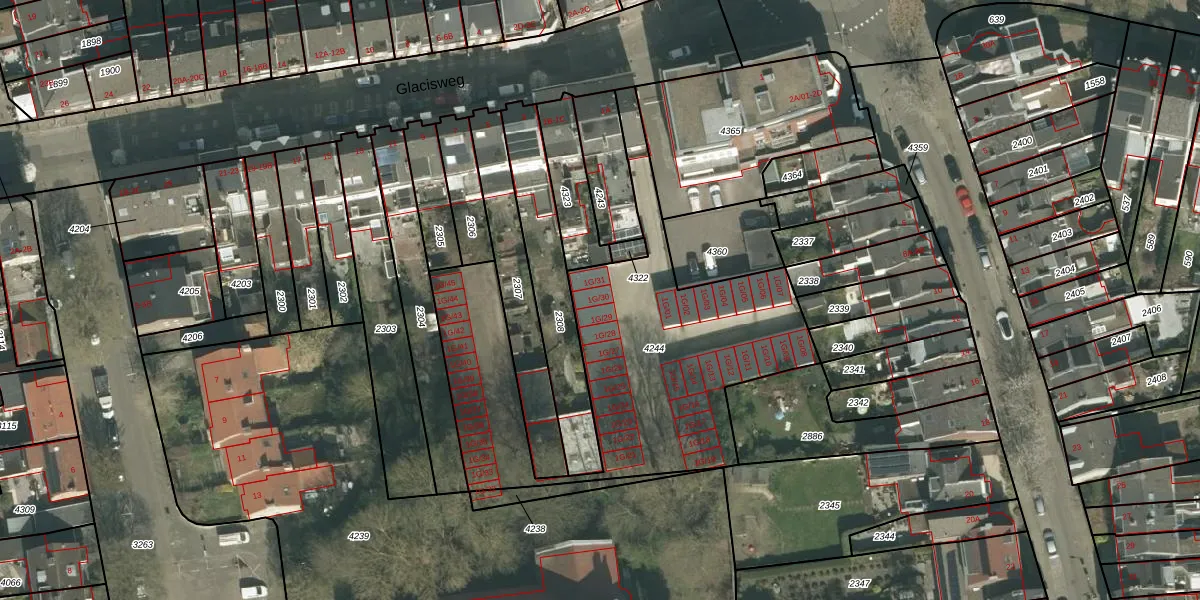Glacisweg 1-G-30 is gelegen op kadastraal perceel PTR00B4244. Deze kadastrale aanduiding is uniek en wordt gebruikt door het Kadaster om eigendomsrechten en andere zakelijke rechten vast te leggen. Het perceel maakt onderdeel uit van de kadastrale gemeente Sint Pieter.
