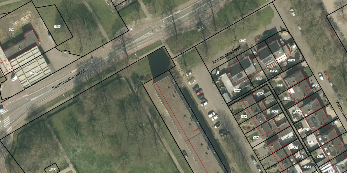 Het perceel waarop Glazeniersdreef 2-C staat heeft een oppervlakte van 2767 m². Dit is een zeer groot perceel. De perceeloppervlakte wordt geregistreerd door het Kadaster. Gedetailleerde informatie over de maten van dit perceel kunt u vinden in het rapport Kadastrale kaart met maatvoering van Glazeniersdreef 2-C.