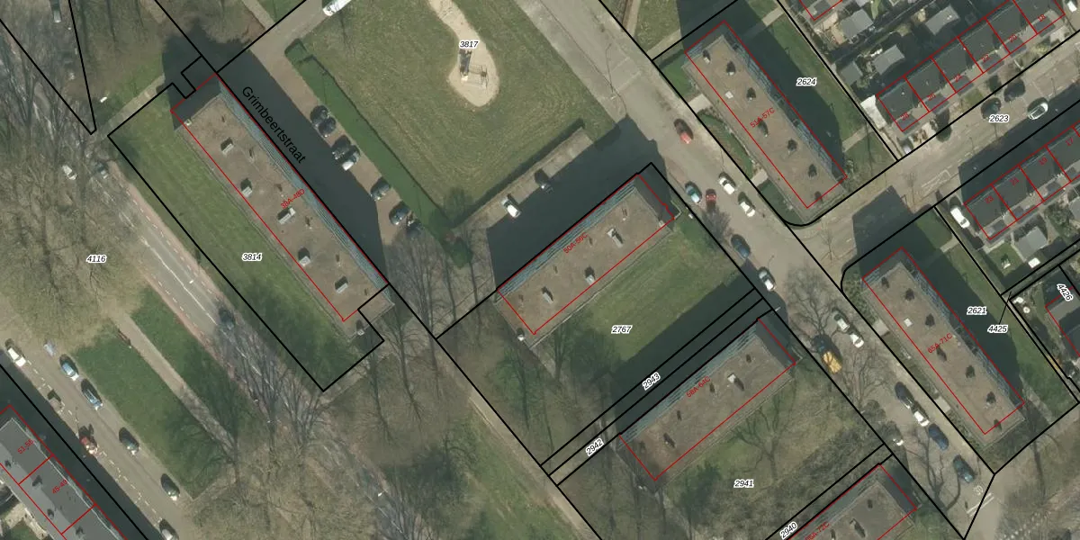 Het perceel waarop Grimbeertstraat 50-A staat heeft een oppervlakte van 1540 m². Dit is een zeer groot perceel. De perceeloppervlakte wordt geregistreerd door het Kadaster. Gedetailleerde informatie over de maten van dit perceel kunt u vinden in het rapport Kadastrale kaart met maatvoering van Grimbeertstraat 50-A.