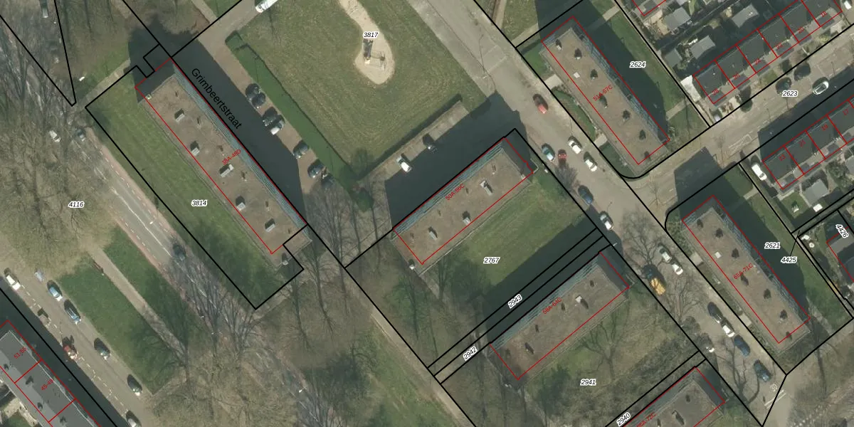 Het perceel waarop Grimbeertstraat 50-C staat heeft een oppervlakte van 1540 m². Dit is een zeer groot perceel. De perceeloppervlakte wordt geregistreerd door het Kadaster. Gedetailleerde informatie over de maten van dit perceel kunt u vinden in het rapport Kadastrale kaart met maatvoering van Grimbeertstraat 50-C.