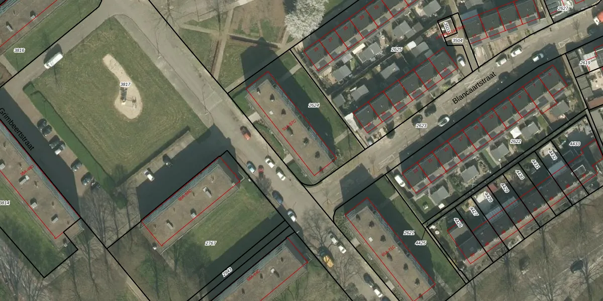 Het perceel waarop Grimbeertstraat 55-C staat heeft een oppervlakte van 1010 m². Dit is een zeer groot perceel. De perceeloppervlakte wordt geregistreerd door het Kadaster. Gedetailleerde informatie over de maten van dit perceel kunt u vinden in het rapport Kadastrale kaart met maatvoering van Grimbeertstraat 55-C.