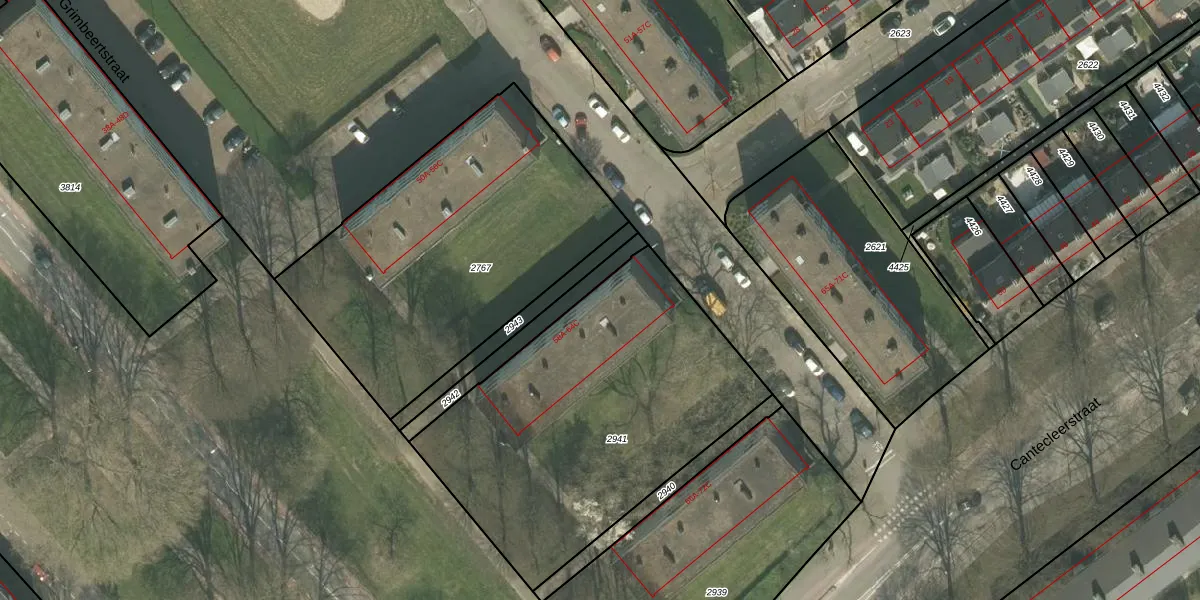 Het perceel waarop Grimbeertstraat 60-A staat heeft een oppervlakte van 1680 m². Dit is een zeer groot perceel. De perceeloppervlakte wordt geregistreerd door het Kadaster. Gedetailleerde informatie over de maten van dit perceel kunt u vinden in het rapport Kadastrale kaart met maatvoering van Grimbeertstraat 60-A.