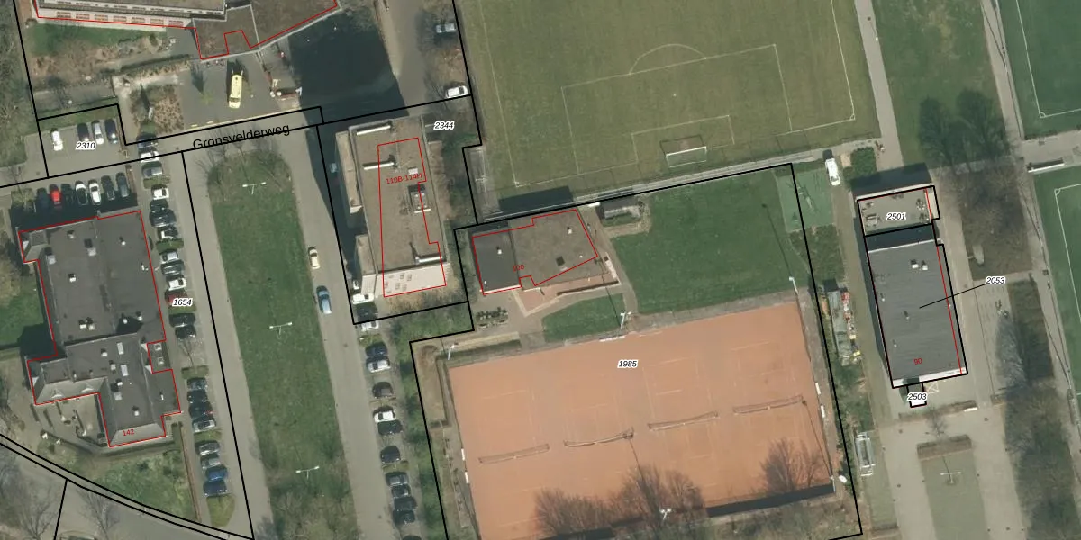 Het perceel waarop Gronsvelderweg 100 staat heeft een oppervlakte van 4978 m². Dit is een zeer groot perceel. De perceeloppervlakte wordt geregistreerd door het Kadaster. Gedetailleerde informatie over de maten van dit perceel kunt u vinden in het rapport Kadastrale kaart met maatvoering van Gronsvelderweg 100.