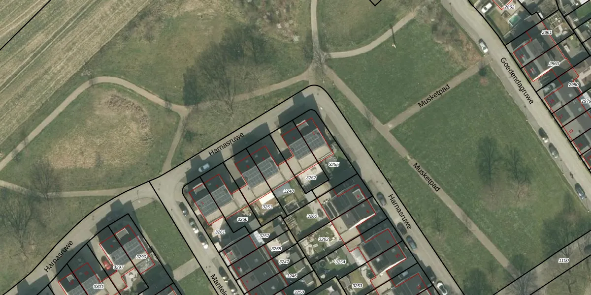 Het perceel waarop Harnasruwe 1 staat heeft een oppervlakte van 216 m². Dit is een middelgroot perceel. De perceeloppervlakte wordt geregistreerd door het Kadaster. Gedetailleerde informatie over de maten van dit perceel kunt u vinden in het rapport Kadastrale kaart met maatvoering van Harnasruwe 1.