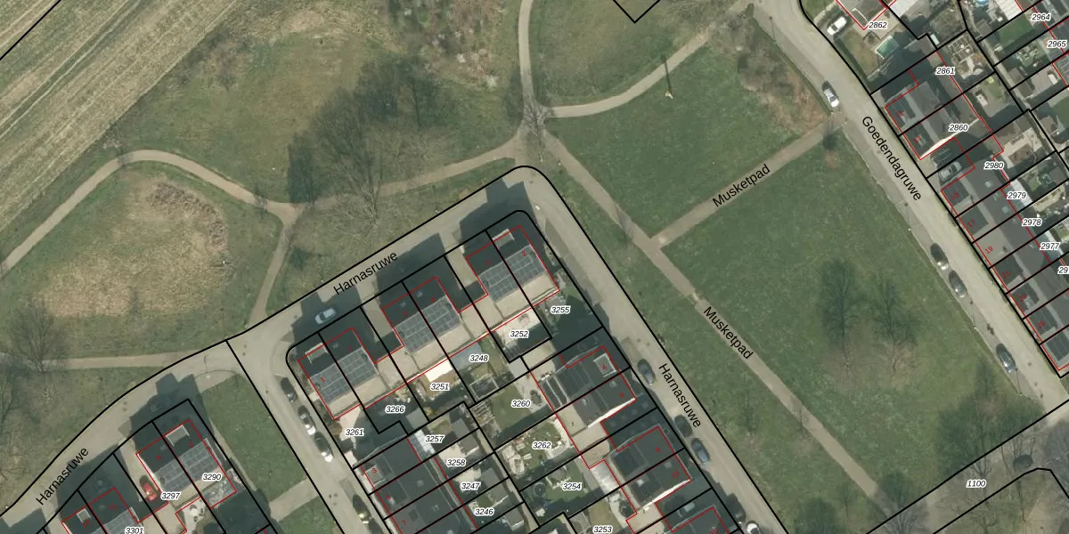 Het perceel waarop Harnasruwe 2 staat heeft een oppervlakte van 258 m². Dit is een middelgroot perceel. De perceeloppervlakte wordt geregistreerd door het Kadaster. Gedetailleerde informatie over de maten van dit perceel kunt u vinden in het rapport Kadastrale kaart met maatvoering van Harnasruwe 2.