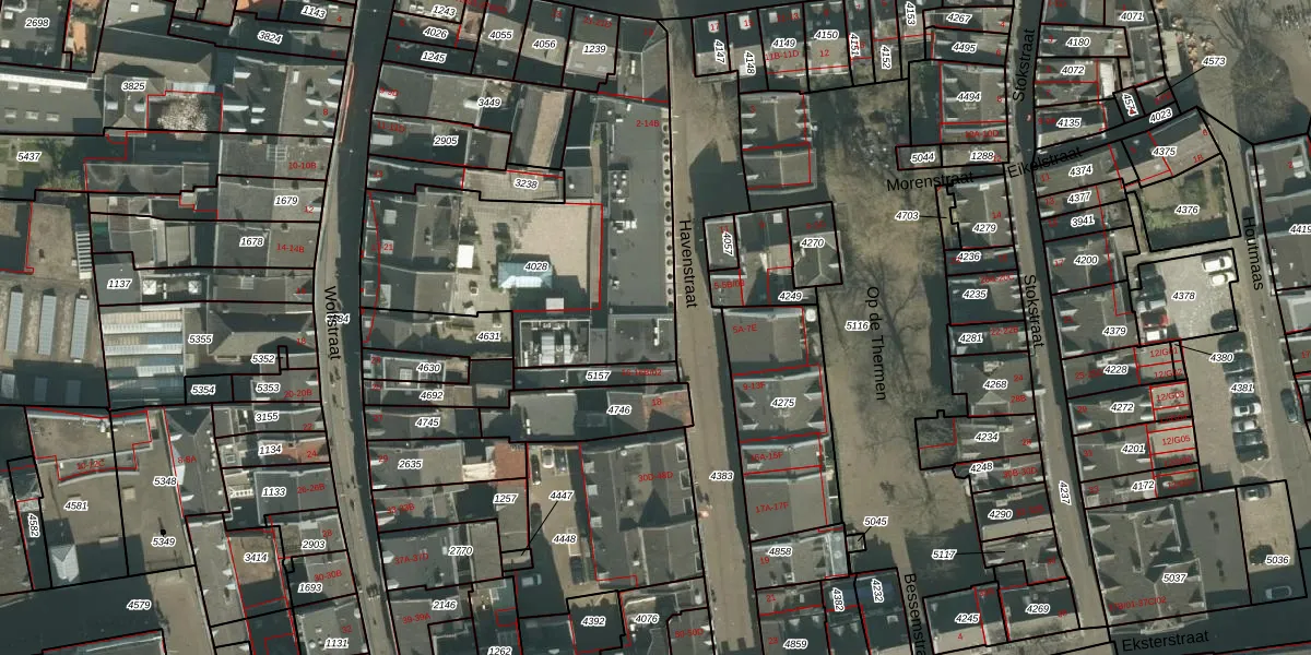Havenstraat 14-B is gelegen op kadastraal perceel MTT00B4028. Deze kadastrale aanduiding is uniek en wordt gebruikt door het Kadaster om eigendomsrechten en andere zakelijke rechten vast te leggen. Het perceel maakt onderdeel uit van de kadastrale gemeente Maastricht.