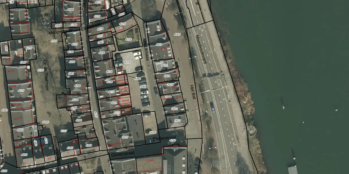 Het adres is gelegen op perceel 2619 in de sectie B en de kadastrale gemeente Maastricht. De kadastrale aanduiding is aldus MTT00-B-2619. De gemiddelde perceelgrootte in Maastricht is 1137,62 m². Dit perceel is kleiner: de perceeloppervlakte bedraagt 87 m². Het grootste perceel in de kadastrale gemeente is 53,8 ha. Het kleinste perceel heeft een oppervlakte van 0 m². Op het perceel zijn 2 adressen aanwezig. In de Basisregistratie Kadaster (BRK) werden de grenzen van het perceel geregistreerd op 01-02-2006.