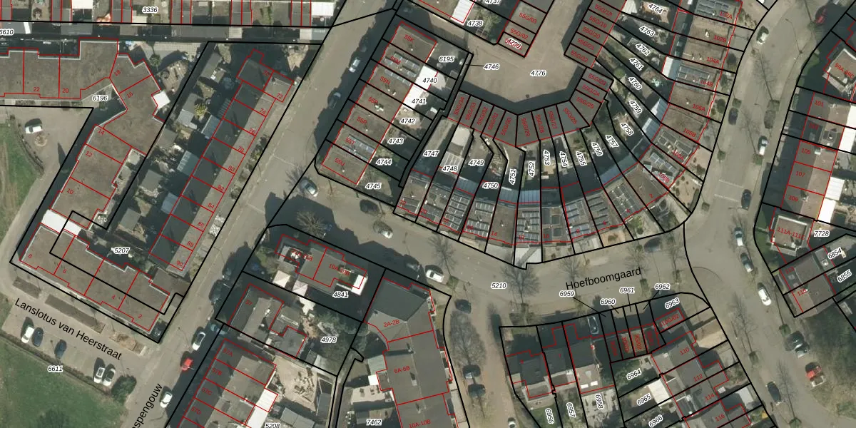 Hoefboomgaard 20 is gelegen op kadastraal perceel MTT00P4748. Deze kadastrale aanduiding is uniek en wordt gebruikt door het Kadaster om eigendomsrechten en andere zakelijke rechten vast te leggen. Het perceel maakt onderdeel uit van de kadastrale gemeente Maastricht.