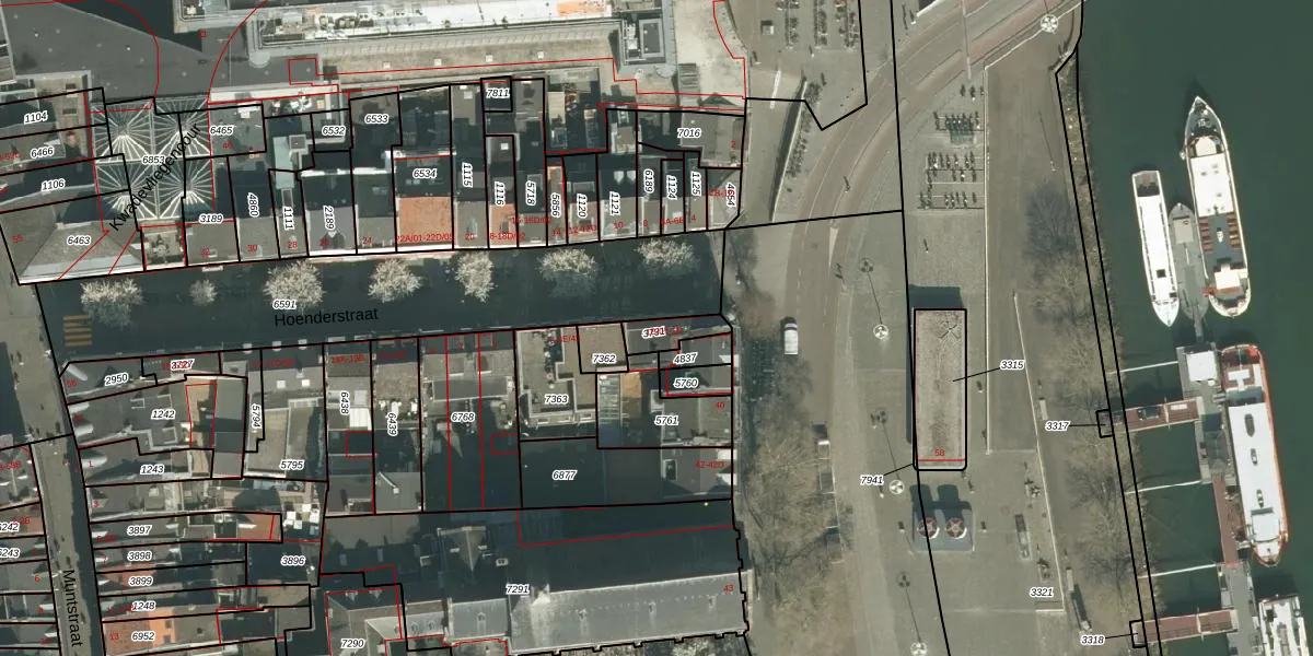 Hoenderstraat 1-C-02 is gelegen op kadastraal perceel MTT00A3731. Deze kadastrale aanduiding is uniek en wordt gebruikt door het Kadaster om eigendomsrechten en andere zakelijke rechten vast te leggen. Het perceel maakt onderdeel uit van de kadastrale gemeente Maastricht.