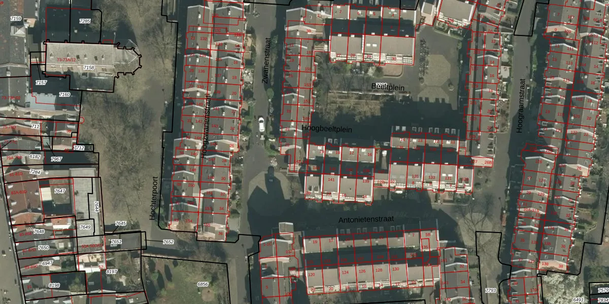 Het perceel waarop Hoogbeeltplein 145 staat heeft een oppervlakte van 1,7 ha. Dit is een zeer groot perceel. De perceeloppervlakte wordt geregistreerd door het Kadaster. Gedetailleerde informatie over de maten van dit perceel kunt u vinden in het rapport Kadastrale kaart met maatvoering van Hoogbeeltplein 145.