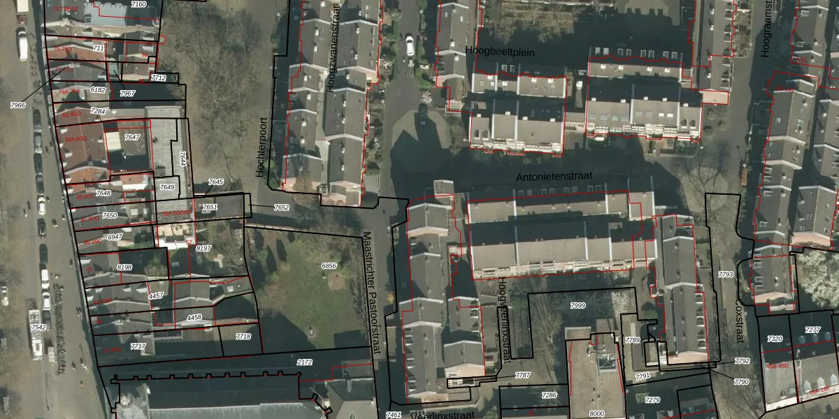 Hoogveerlinxstraat 121 is gelegen op kadastraal perceel MTT00A7206. Deze kadastrale aanduiding is uniek en wordt gebruikt door het Kadaster om eigendomsrechten en andere zakelijke rechten vast te leggen. Het perceel maakt onderdeel uit van de kadastrale gemeente Maastricht.