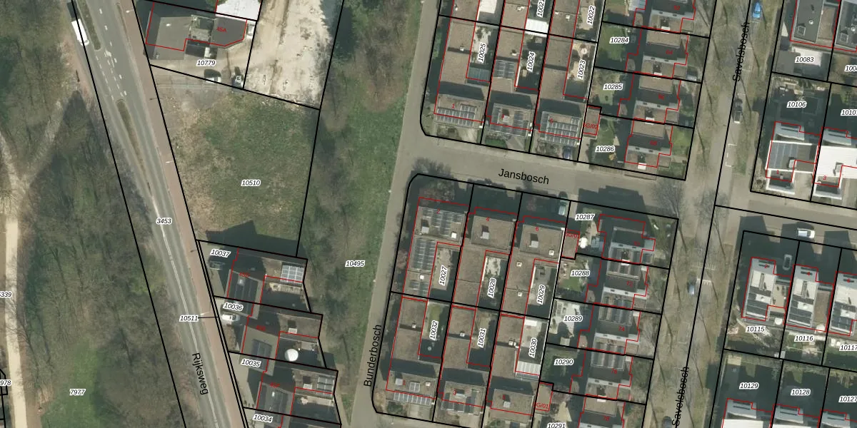 Het perceel waarop Jansbosch 2 staat heeft een oppervlakte van 406 m². Dit is een groot perceel. De perceeloppervlakte wordt geregistreerd door het Kadaster. Gedetailleerde informatie over de maten van dit perceel kunt u vinden in het rapport Kadastrale kaart met maatvoering van Jansbosch 2.