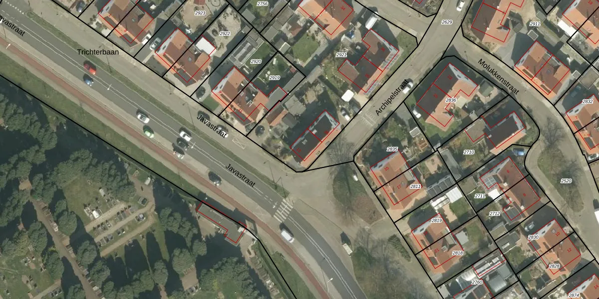Het perceel waarop Javastraat 13 staat heeft een oppervlakte van 1902 m². Dit is een zeer groot perceel. De perceeloppervlakte wordt geregistreerd door het Kadaster. Gedetailleerde informatie over de maten van dit perceel kunt u vinden in het rapport Kadastrale kaart met maatvoering van Javastraat 13.