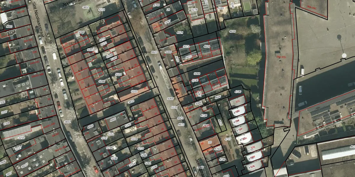 Jekerstraat 25 is gelegen op kadastraal perceel MTT00B5065. Deze kadastrale aanduiding is uniek en wordt gebruikt door het Kadaster om eigendomsrechten en andere zakelijke rechten vast te leggen. Het perceel maakt onderdeel uit van de kadastrale gemeente Maastricht.