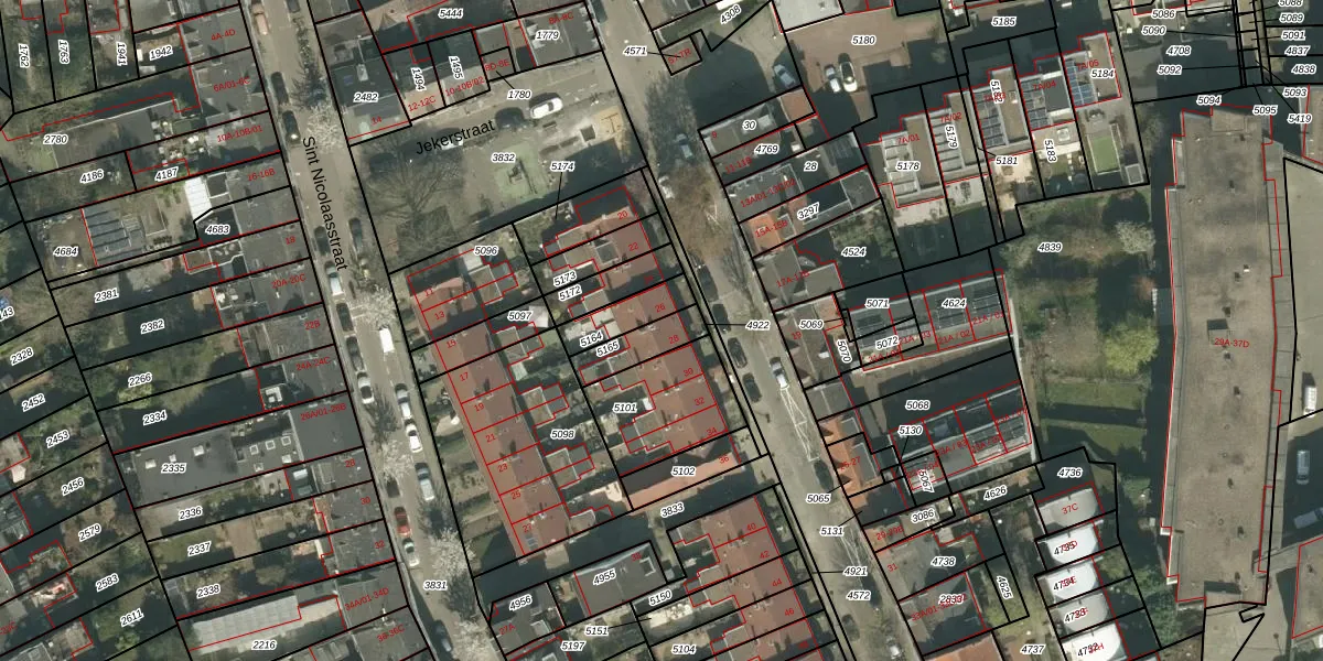 Jekerstraat 28 is gelegen op kadastraal perceel MTT00B5165. Deze kadastrale aanduiding is uniek en wordt gebruikt door het Kadaster om eigendomsrechten en andere zakelijke rechten vast te leggen. Het perceel maakt onderdeel uit van de kadastrale gemeente Maastricht.