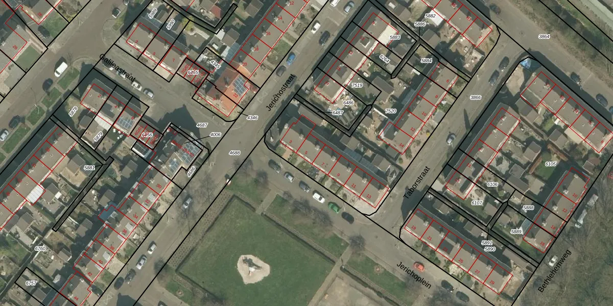 Jerichoplein 5 is gelegen op kadastraal perceel MTT00G7520. Deze kadastrale aanduiding is uniek en wordt gebruikt door het Kadaster om eigendomsrechten en andere zakelijke rechten vast te leggen. Het perceel maakt onderdeel uit van de kadastrale gemeente Maastricht.